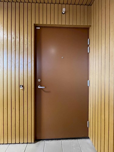 Døra kan monteres både i yttervegg og inne i leilighetsoppganger. I tillegg er alle ytterdørene fra Gilje med malt kompaktlaminat og trenger ikke overbygg for å stå imot regn og vind.