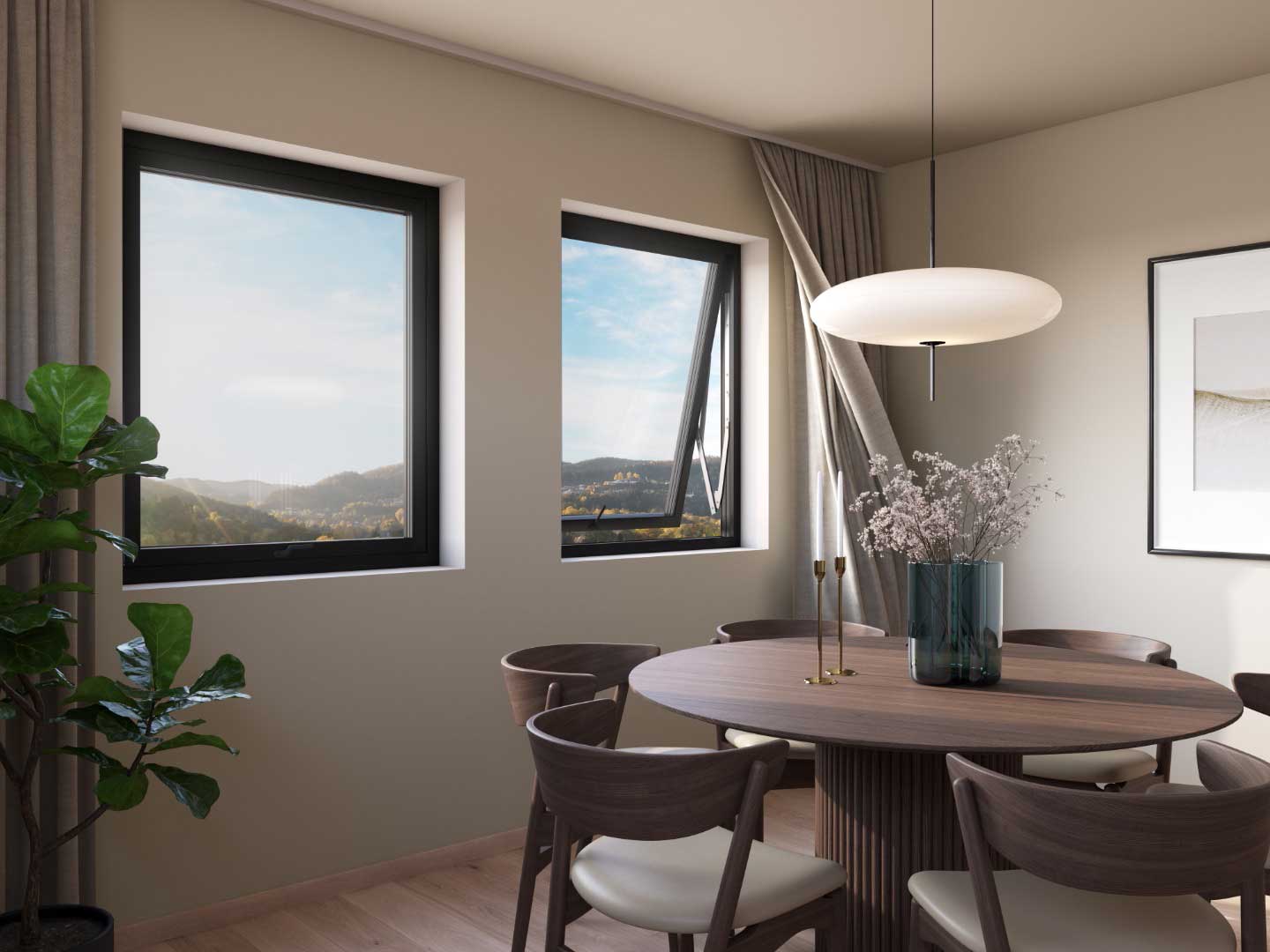 Gilje er opptatt av å utvikle løsninger som både er funksjonelle og fremtidsrettet. Det betyr at vi hele tiden må følge med på utviklingen i markedet og hva folk ønsker. Nå har vi utviklet noe vi har valgt å kalle for Klimanot. Dette er en vindusløsning der vi har valgt å flytte notsporet lenger inn på vinduet. Det betyr at du vil få en mindre synlig karm, som vil gi følelsen av en større vindusflate – noe vi ser de fleste som bygger moderne boliger og bygg vil ha.