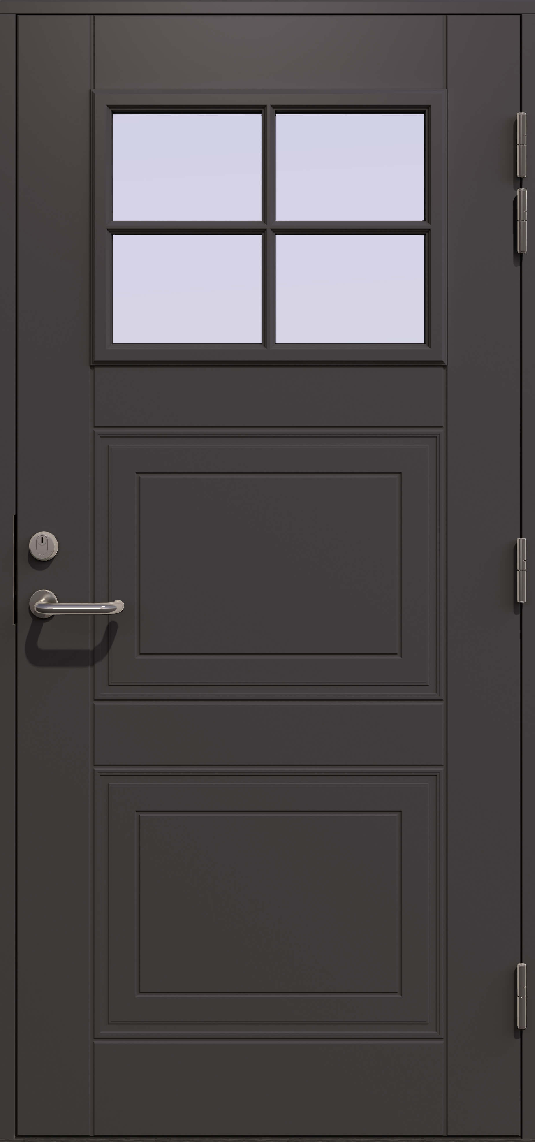 - Komplette løsninger: Du kan velge en enkelt dør eller et helt inngangsparti med sidefelt og overlys. Hele konstruksjonen leveres ferdig sammensatt for et helhetlig og vakkert utseende.