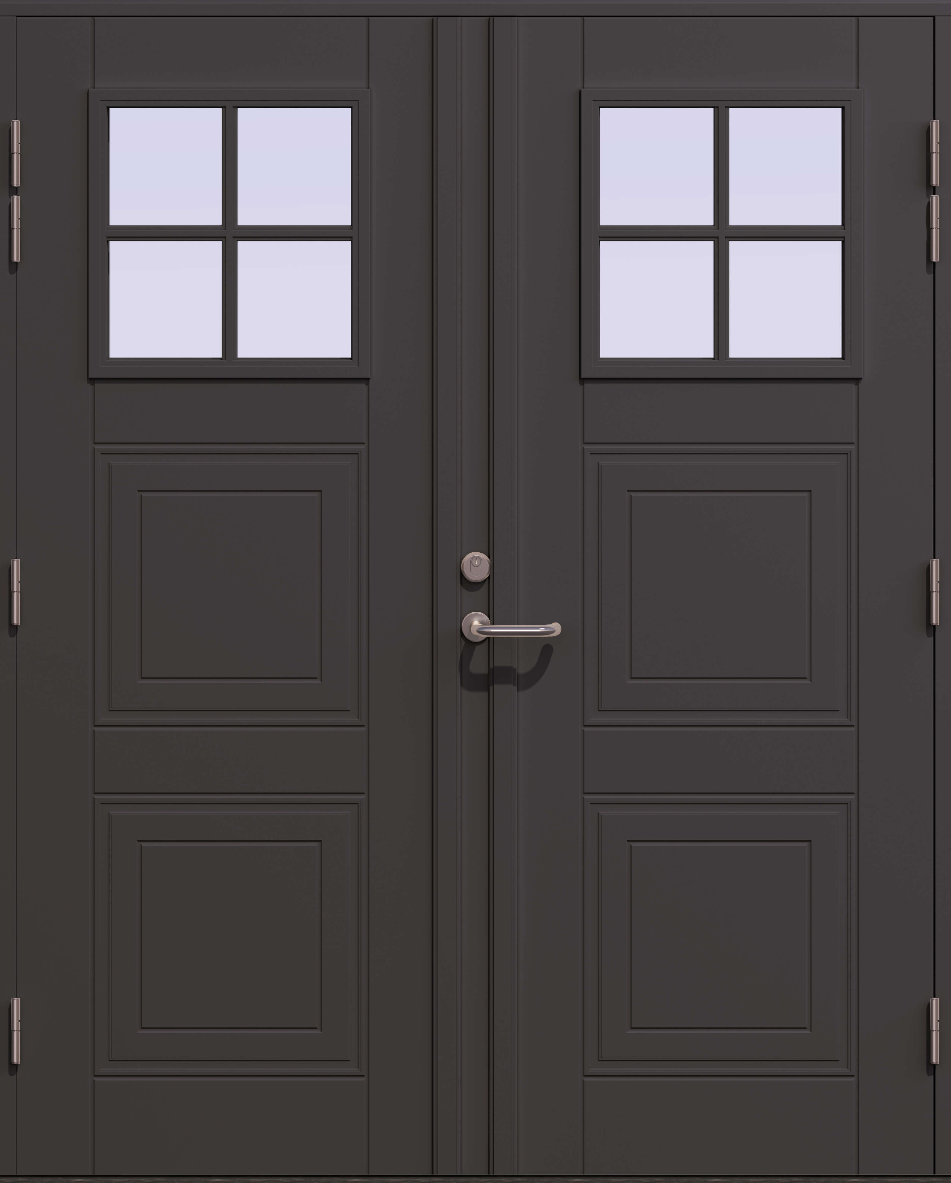- Størrelser: Dørene kan leveres i mange størrelser. Enkeltdører kan ha en bredde på opptil 129 cm, mens to-fløyede dører kan være inntil 239 cm brede. Høyden kan være på opptil 239 cm.