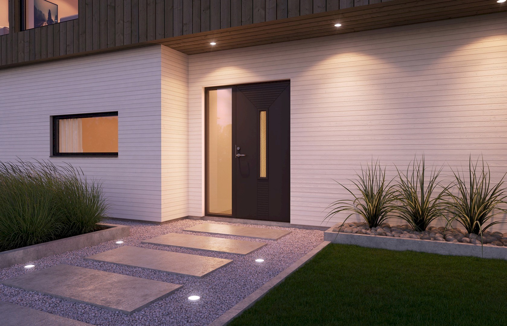 - Komplette løsninger: Du kan velge en enkelt dør eller et helt inngangsparti med sidefelt og overlys. Hele konstruksjonen leveres ferdig sammensatt for et helhetlig og vakkert utseende.