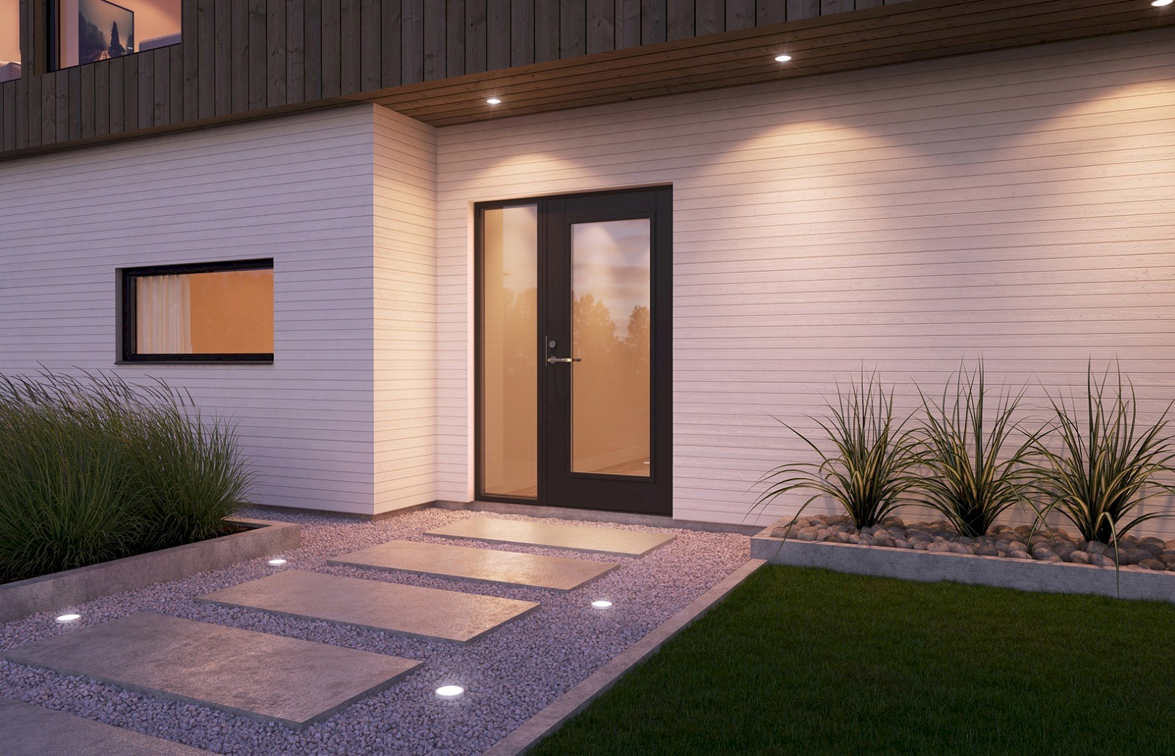 - Komplette løsninger: Du kan velge en enkelt dør eller et helt inngangsparti med sidefelt og overlys. Hele konstruksjonen leveres ferdig sammensatt for et helhetlig og vakkert utseende.