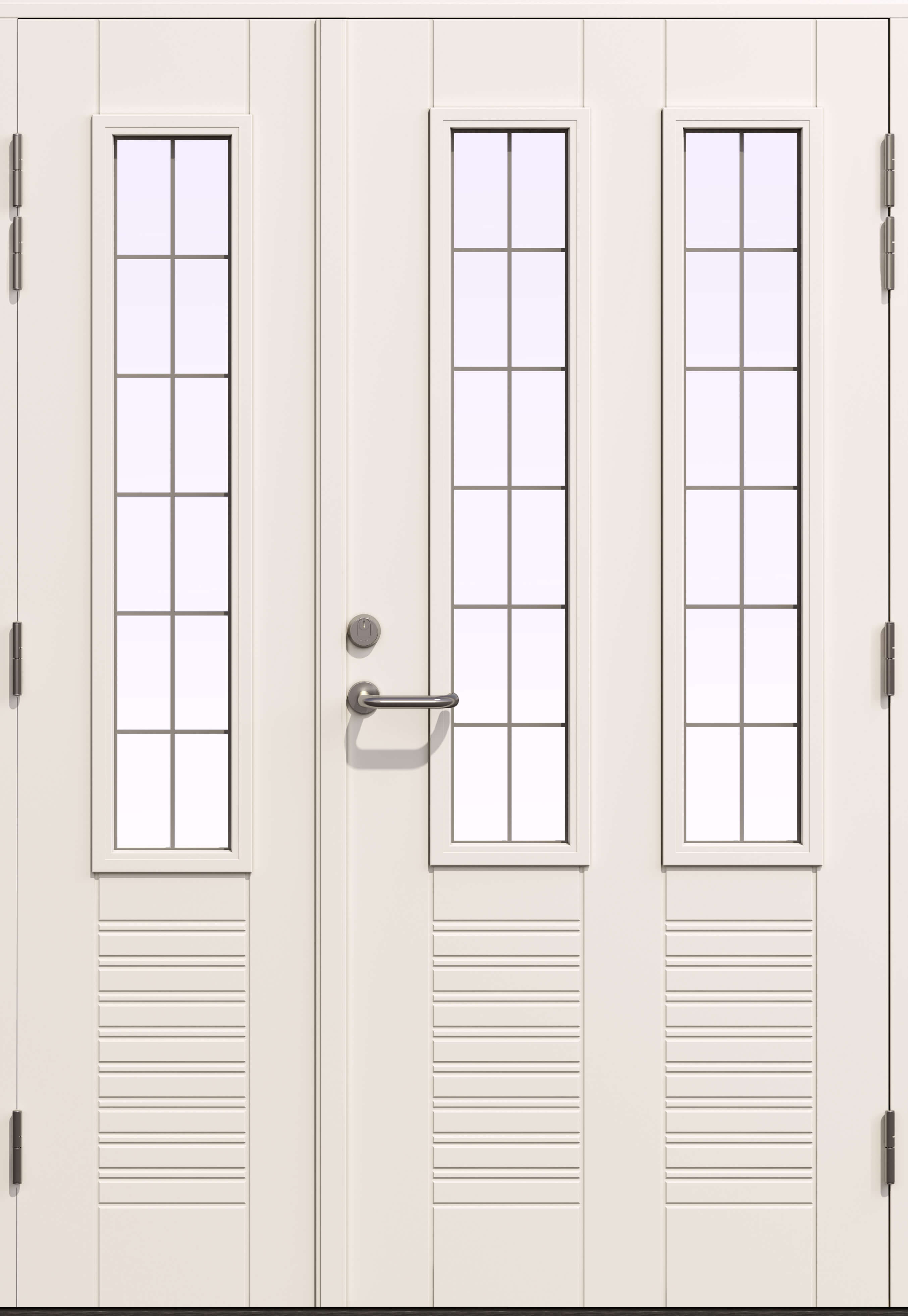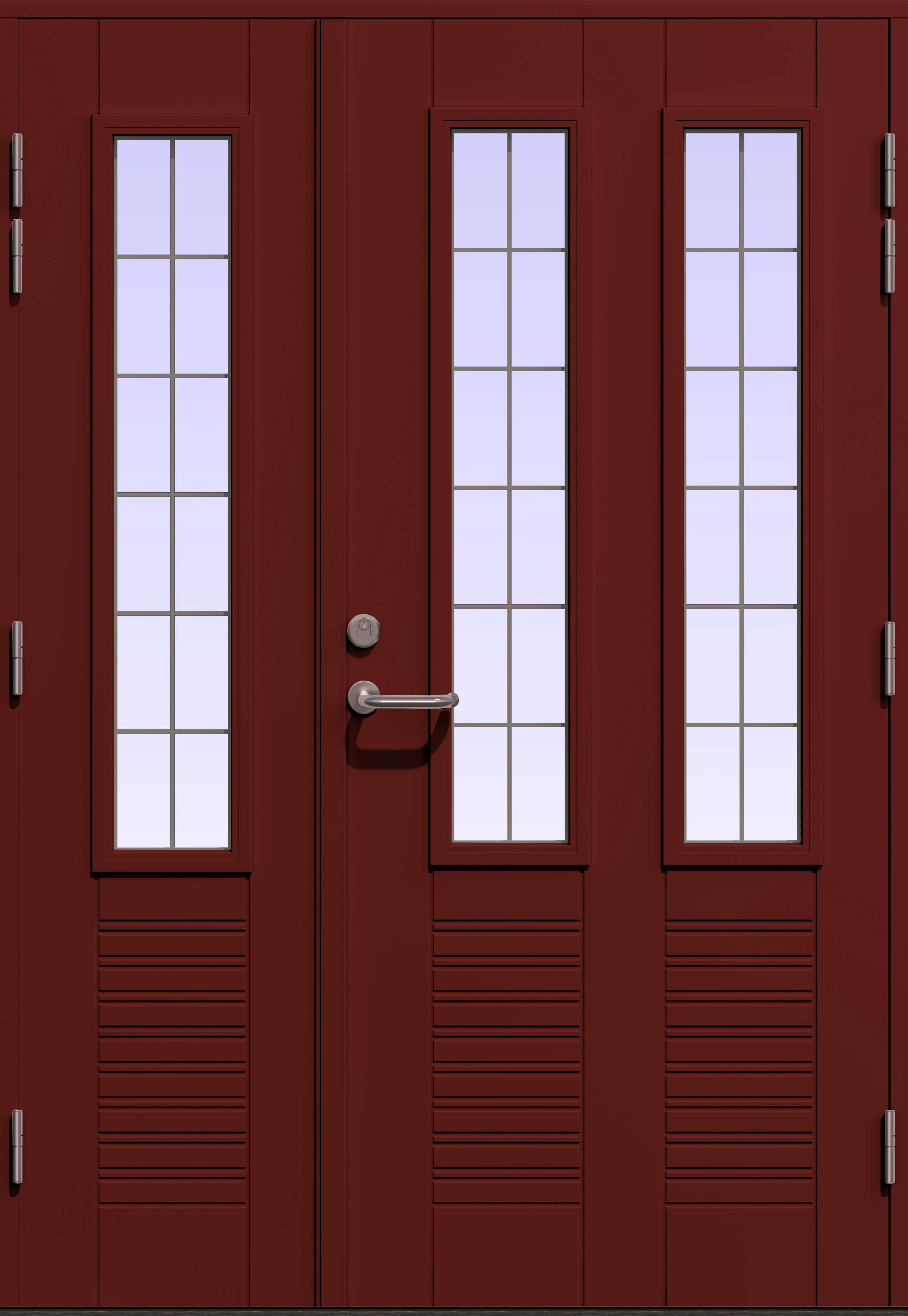 - Størrelser: Dørene kan leveres i mange størrelser. Enkeltdører kan ha en bredde på opptil 129 cm, mens to-fløyede dører kan være inntil 239 cm brede. Høyden kan være på opptil 239 cm.