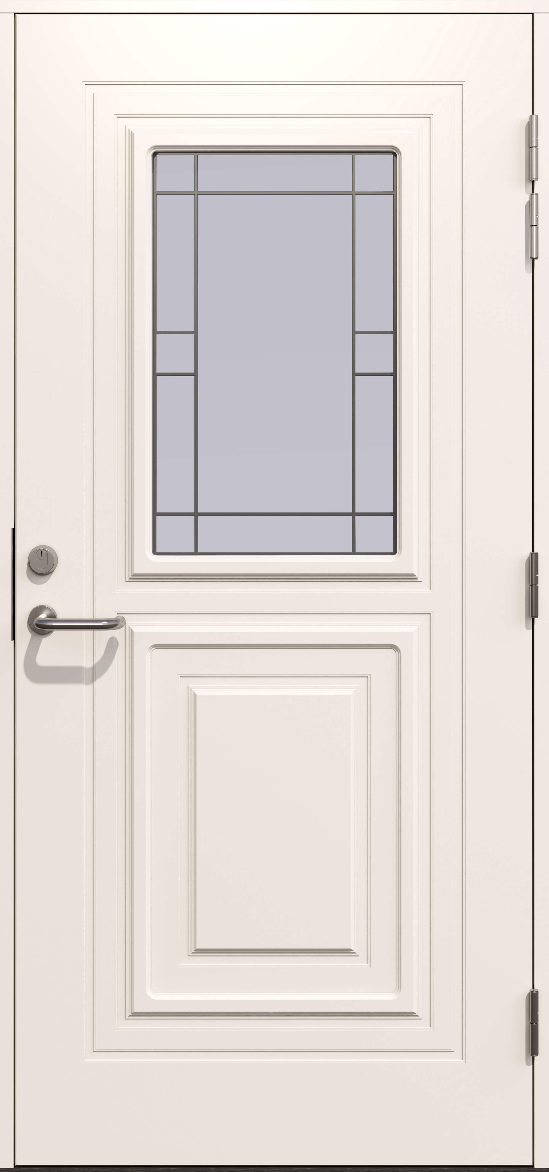 Du kan velge mellom ulike design og malt i valgfri NCS farge, og glassfelt med sikkerhetsglass kan også leveres med blysprosser og annet spesialglass.