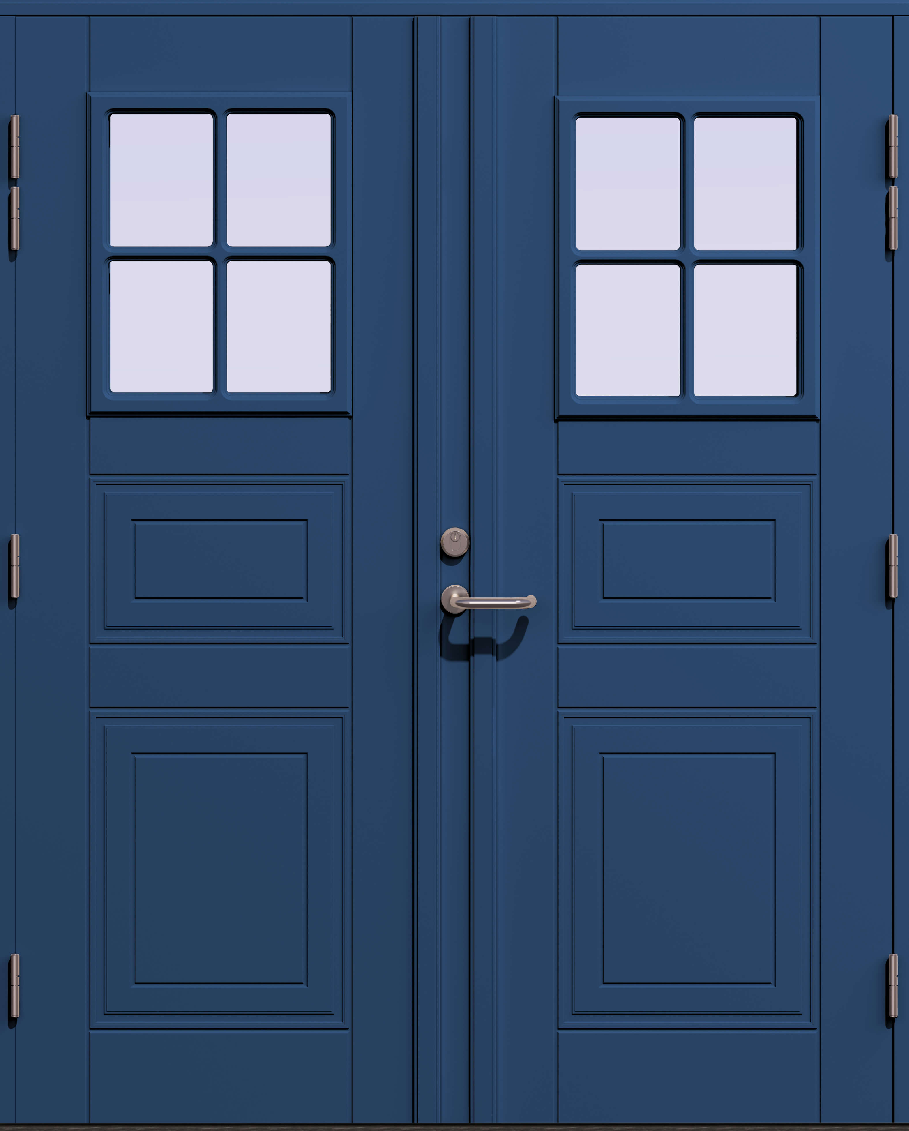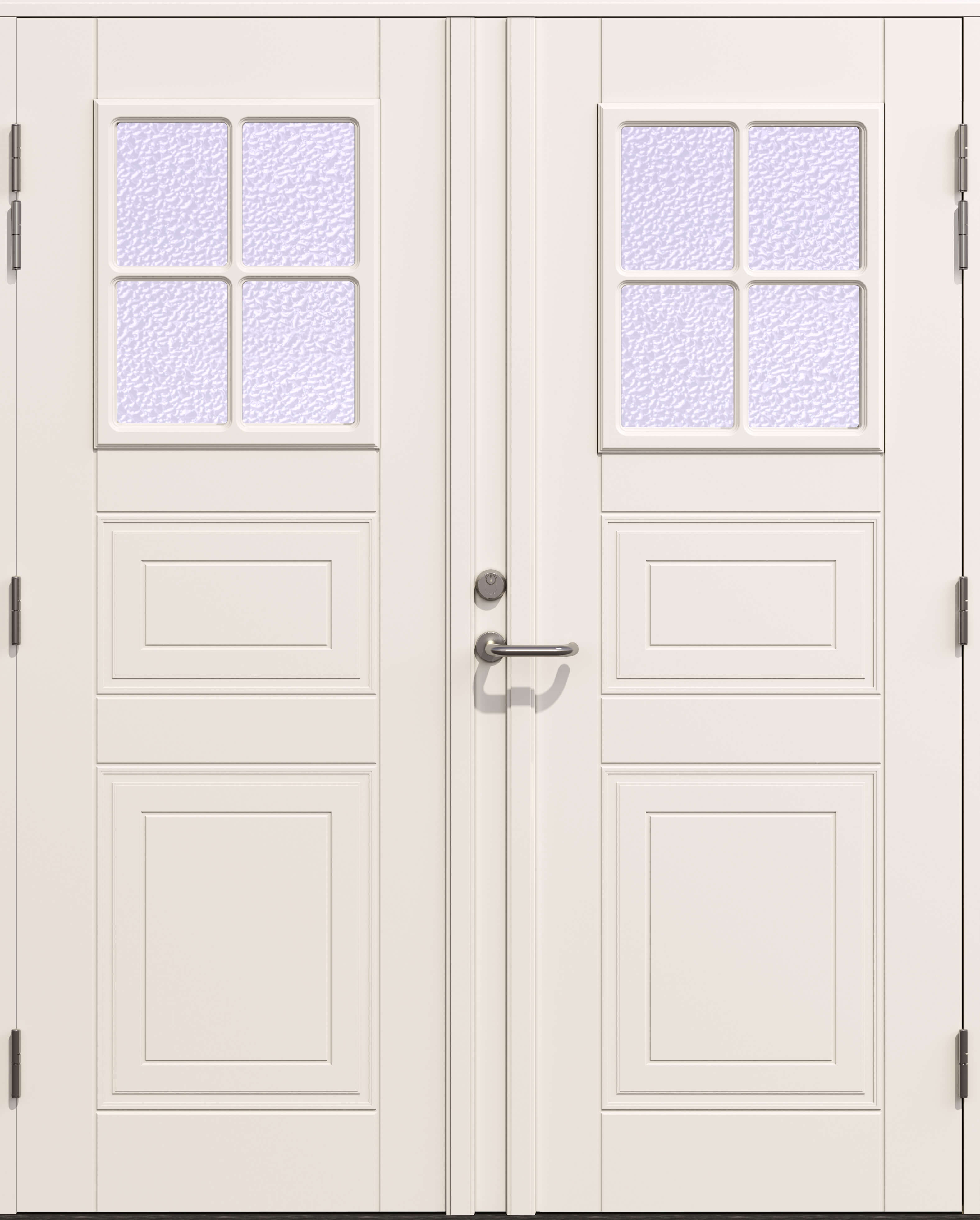 • Størrelser: Dørene kan leveres i mange størrelser. Enkeltdører kan ha en bredde på opptil 129 cm, mens to-fløyede dører kan være inntil 239 cm brede. Høyden kan være på opptil 239 cm.